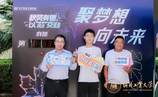 “秋风有信,以‘芯’交心”,突出学院专业特色,为新生定制了报到计数打卡环节,学生通过按下按钮,显示唯一报到顺序,以电子特色定格入学瞬间;同时学院为新生定制了印有学校图书馆、教学楼等印记的书签、明信片、笔记本等,以爱校荣校系好新生入学第一粒扣子。