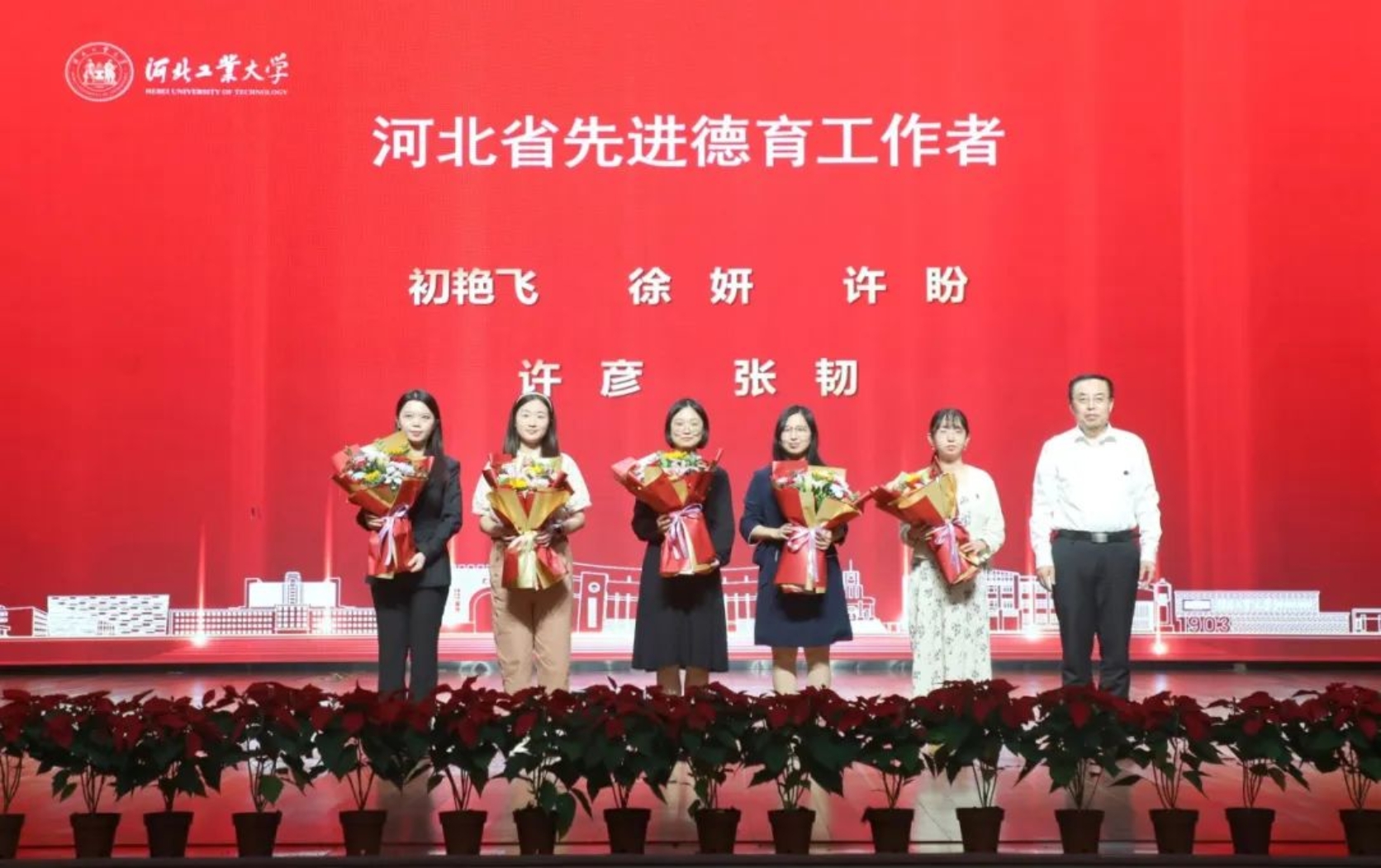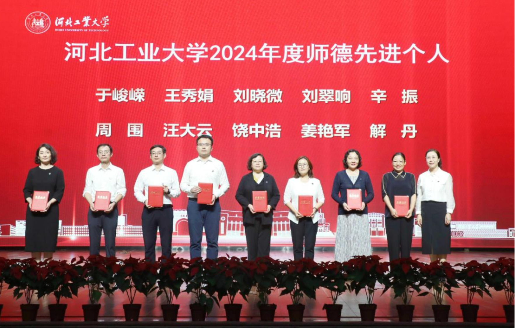 这样一群年轻的教师,活跃在学生工作的最前沿,是学生们成长道路上的坚实后盾与亲密伙伴。他们用青春与汗水,书写着关于爱与奉献的故事,成为学生心中那抹最亮丽的色彩。“河北省先进德育工作者”登上舞台接受表彰。
