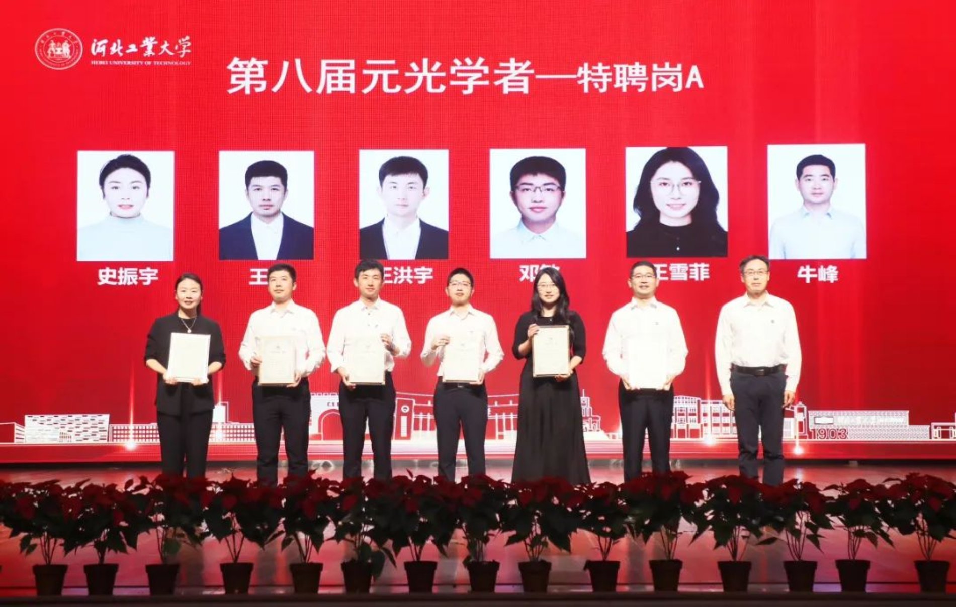 元光学者聘任仪式上,校领导为受聘人员颁发聘书。