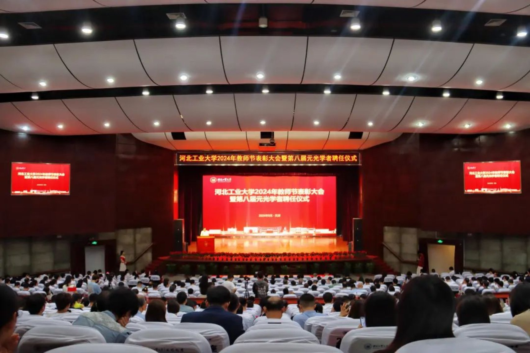 大会在庄严的国歌声中开始。王慧远宣读第八届元光学者聘任和教师荣誉表彰决定,聘任刘卫朋等74名教师为第八届“元光学者”;表彰机械工程学院获得“全国教育系统先进集体”、苑帅民获得“全国模范教师”荣誉称号;翁玲等3人获得“河北省普通本科院校教学名师”称号;刘海等8人为“河北省高校教师教学创新大赛”获奖教师;王坤等9人为“天津市、河北省青年教师教学竞赛”获奖教师;初艳飞等5人获得“河北省先进德育工作者”称号,周永芳等10人获得“AC米兰中文官网入口教学名师”称号,于峻嵘等10人获得“AC米兰中文官网入口2024年度师德先进个人”称号。