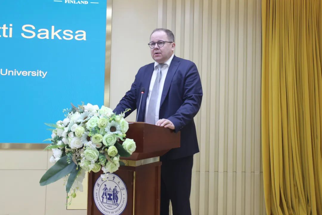 芬兰拉彭兰塔市董事会主席约纳斯·赫尔曼尼·格伦隆德(Joonas Hermanni Grönlund)先生在致辞中从拉彭兰塔城市建设、教育历史与LUT大学发展历程出发,回顾了芬兰教育体系的发展脉络,并展望了两校未来在多领域的合作,通过优势互补、资源共享,双方必将打造中芬高等教育合作的新典范,为应对全球性挑战贡献智慧与力量。
