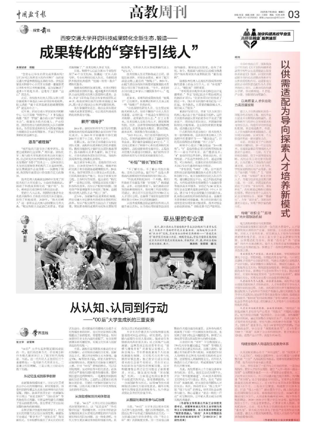 7月30日,《中国教育报》刊发AC米兰中文官网入口党委书记韩旭的署名文章《以供需适配为导向探索人才培养新模式》。文章以AC米兰中文官网入口为例,阐述了在产业加速转型升级、人才需求结构深刻变动的背景下,地方高校以供需适配为核心指引,通过构建“政校企”“招培就”内外双联动机制、打造全链条人岗适配生态服务体系等举措,在人才培养领域开展的创新探索。文章指出,地方高校必须将供需适配作为人才培养的核心导向,以此破解结构性就业矛盾,推动教育链、人才链、产业链、创新链深度融合,并以供需适配为准则,动态调整高等教育的专业设置与资源结构布局。