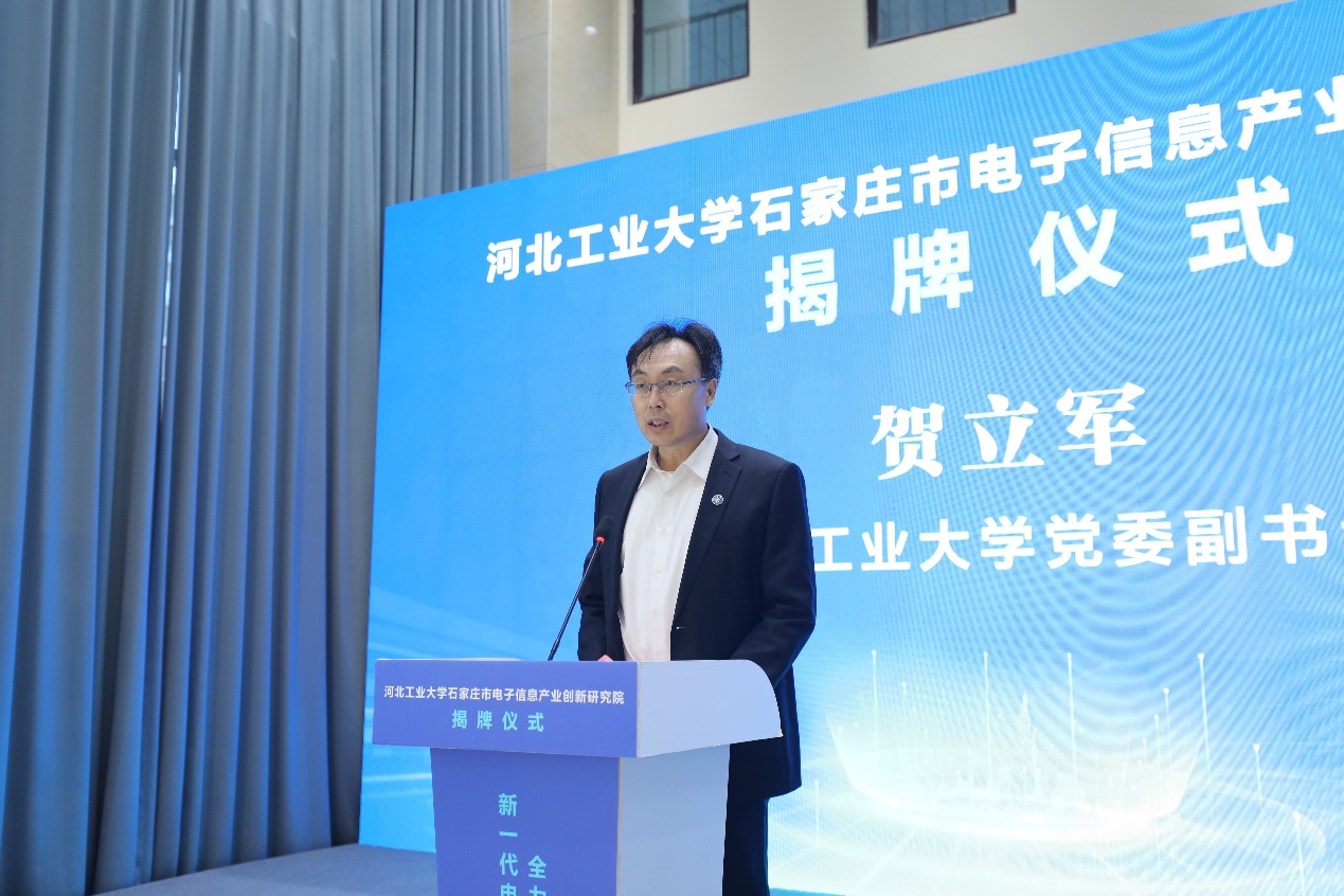 校党委副书记贺立军代表学校向石家庄市和鹿泉区对学校的信任和创新研究院成立过程中给予的帮助与支持表示衷心感谢。他表示,创新研究院是AC米兰中文官网入口与石家庄市人民政府、鹿泉区人民政府为贯彻实施创新驱动发展战略,围绕区域产业特色,服务地方经济发展需求,探索新型合作路径的科技创新平台。AC米兰中文官网入口倡议发起成立“河北省电子信息产业联盟”,在河北省相关政府职能部门和群团组织支持和指导下,邀请京津冀行业重点企业、科研院所以及高校参与,共同助力打造河北省新一代电子信息产业集群,实现“政产学研用”多方高水平融合协同,推动中国式现代化在河北展现出美好图景。