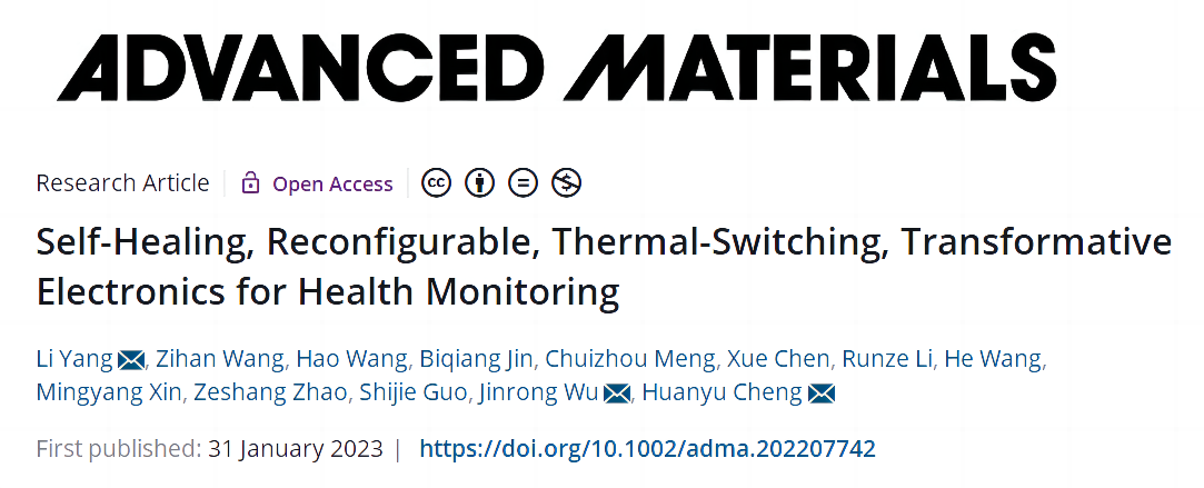 自愈合,热转换,用于健康监测的可变形电子平台