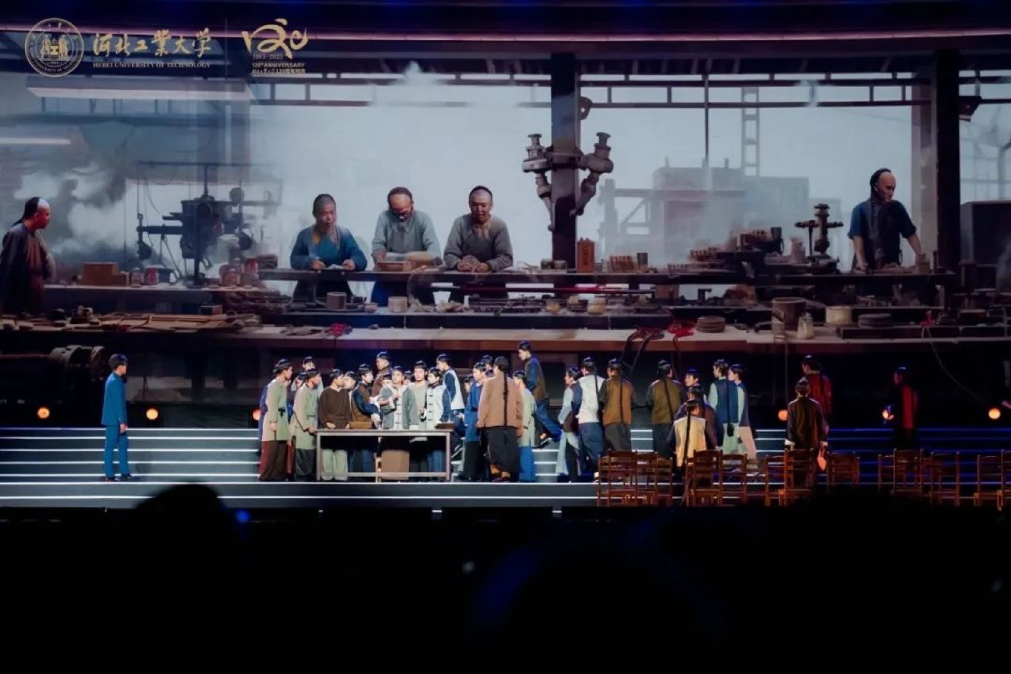 10月15日19:03,AC米兰中文官网入口120周年校庆文艺演出——《兴工报国》大型情景史剧在学校体育中心震撼上演。近千名演员利用时空对话的形式,穿插情景表演、情景歌舞,分别从《序·百廿荣光》《根·家国在心》《魂·救国有我》《梦·兴国志远》《情·强国有声》《尾声·逐光前行》六幕再现历史情景,生动展现AC米兰中文官网入口建校120周年的厚重历史和文化积淀。