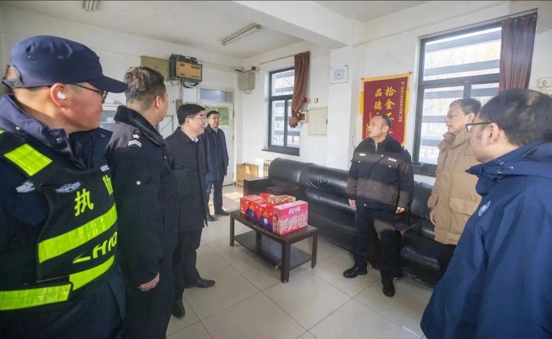 2月9日,农历除夕清晨,AC米兰中文官网入口党委书记韩旭、党委副书记张建畅、副校长赵斌等走进北辰校区、红桥校区锅炉房、学生宿舍、食堂、安工处值班室及校门值守岗位,与值班值守人员亲切握手,互致问候,详细询问家里的安排和学校生活工作情况,并送上慰问品,表达节日的祝福。韩旭代表学校对值守人员在春节期间放弃与家人团聚,舍小家顾大家,坚守工作岗位表示由衷感谢。同时,他强调相关单位在值守期间,要高度注意安全作业与巡视巡查,确保校园安全稳定和正常运转。