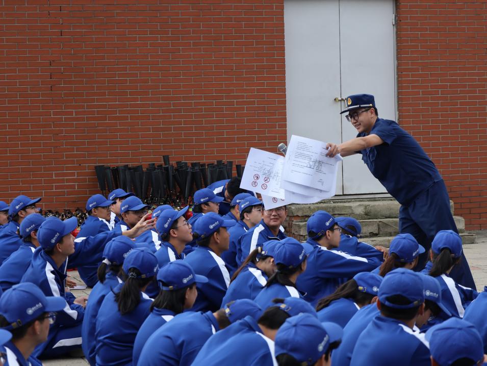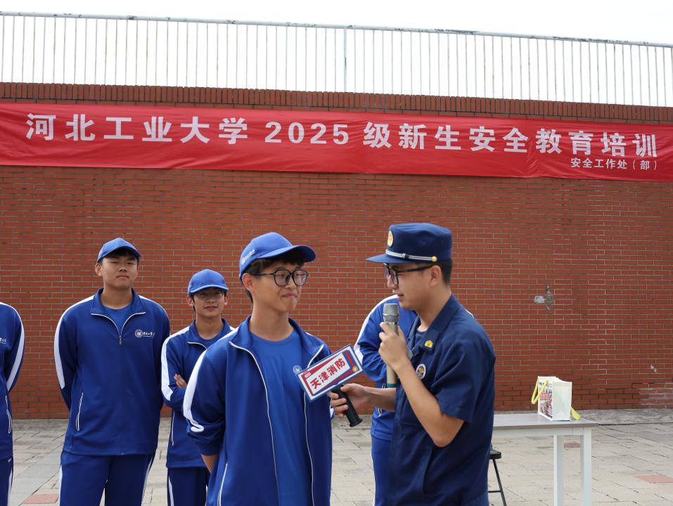 在消防安全培训场上,消防官兵结合新生日常学习生活的宿舍、食堂、教学楼等重点区域,用生动的案例和幽默的语言,详细讲解了火灾的成因、初期火灾的扑救方法、火场逃生自救技巧以及日常消防安全注意事项以及不同类型灭火器的操作使用规程等常识。为深化学习效果,培训过程中设置了互动问答环节,消防官兵针对校园消防安全重点问题现场提问,邀请学生代表作答。“宿舍里可以使用大功率电器吗?”“火灾发生时,应该乘坐电梯还是走楼梯?”面对提问,新生代表积极思考、准确回应,在互动交流中进一步巩固安全知识要点,强化对消防安全重要性的认知。