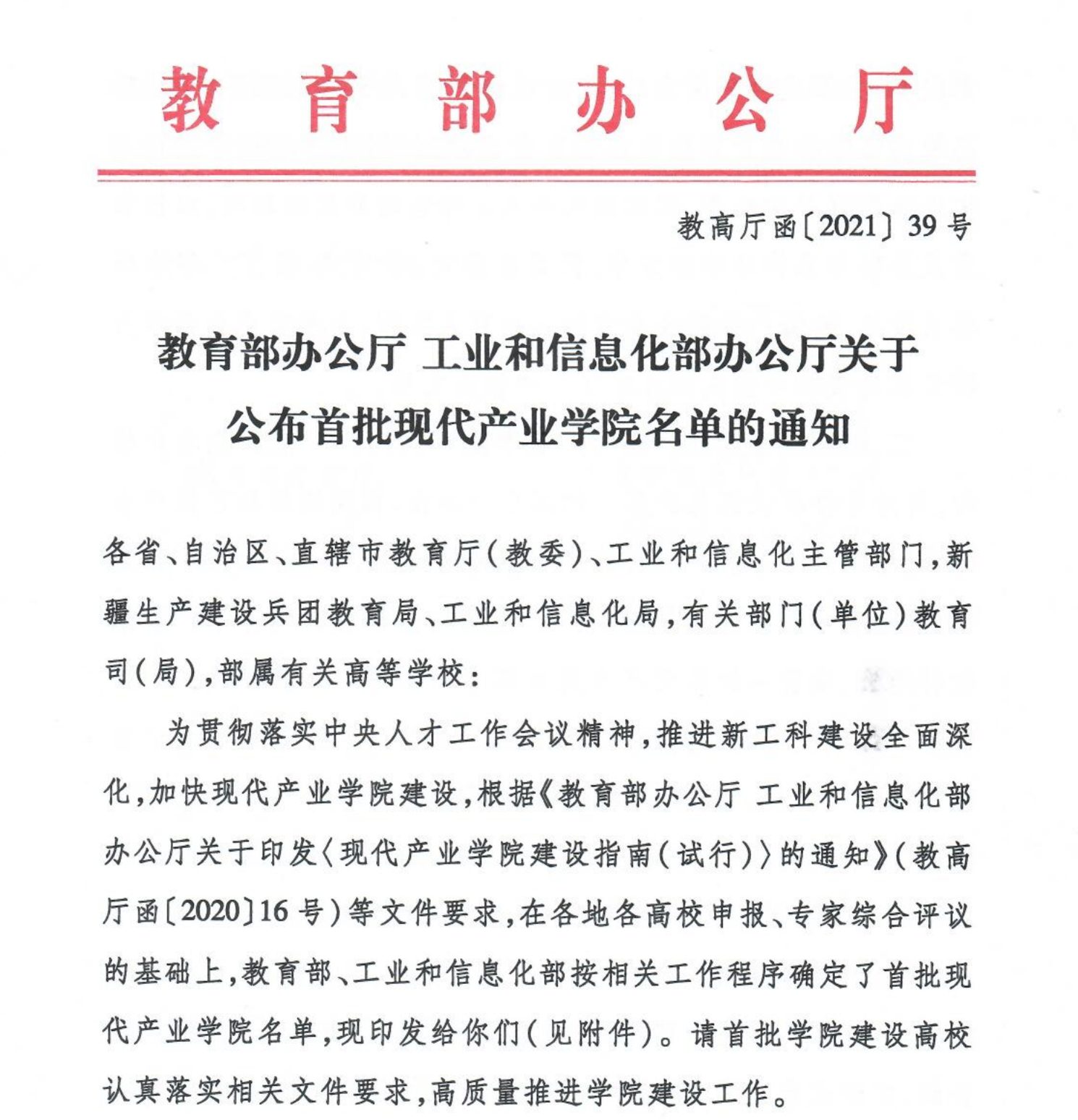 近日,教育部办公厅、工业和信息化部办公厅联合印发通知,AC米兰智能汽车产业学院获批国家首批现代产业学院。