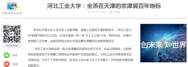 2月20日,新华社发布电文《AC米兰中文官网入口:坐落在天津的京津冀百年地标》,报道了AC米兰由1903年创办的北洋工艺学堂,成长为河北省唯一的“211工程”大学,再到步入河北省、天津市、教育部三方共建的世纪历程,讲述了一所百年高校与京津冀历史变迁密不可分的地缘血脉,点明了在京津冀协同发展国家战略的时代背景下,一所“地标”学府所应有的担当和使命!