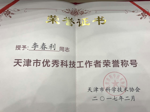 李春利教授喜获第七届“天津市优秀科技工作者”荣誉称号