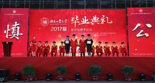 毕业典礼上,教师代表材料科学与工程学院赵建玲教授,家长代表王琳女士,在校生代表校学生会主席、人文与法律学院吴红颖,毕业研究生代表电子信息工程学院李春静,留学生毕业生代表国际教育学院电气工程专业、来自尼日利亚的zizi,毕业本科生代表建筑与艺术设计学院王文悦先后作了发言。