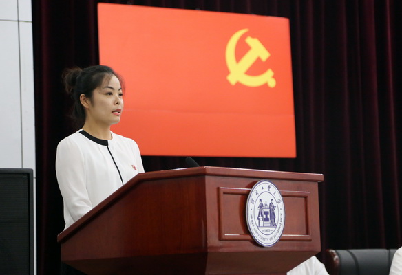 优秀党务工作者代表机械工程学院党务干事王媛媛发言