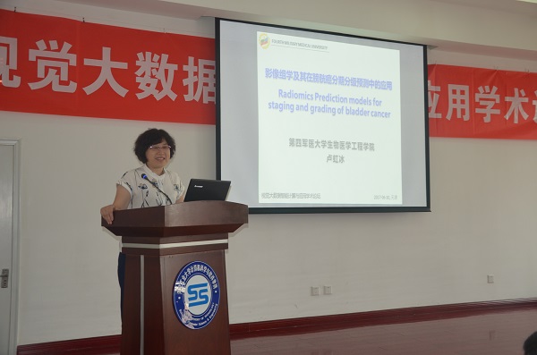 开篇是由第四军医大学卢虹冰教授做了题为Radiomic prediction model for muscle invasiveness and grading of bladder cancer的报告。报告介绍了医学影像组学(Radiomic)的内涵和发展历史,指出医学影像组学是视觉大数据在医学诊断中的重要应用,并以膀胱癌的分级诊疗为例,介绍了基于影像组学的主要任务和相关成果,包括膀胱内外壁的分割方法,肿瘤区域特征提取方法,多模态影像融合方法和基于SVM等的分类方法,并讲解了基于医学影像组学的癌症辅助诊断,指出基于影像组学和深度学习的人工智能系统对提高诊断效率,减轻医生负担,造福病患具有重大的科学意义和临床价值。