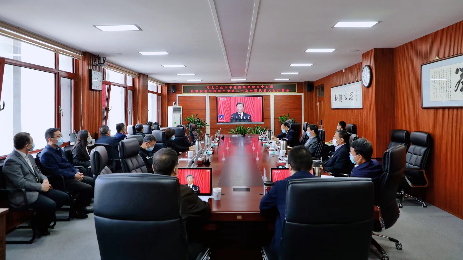 校党委理论学习中心组(扩大)集体收看党的二十大开幕盛况