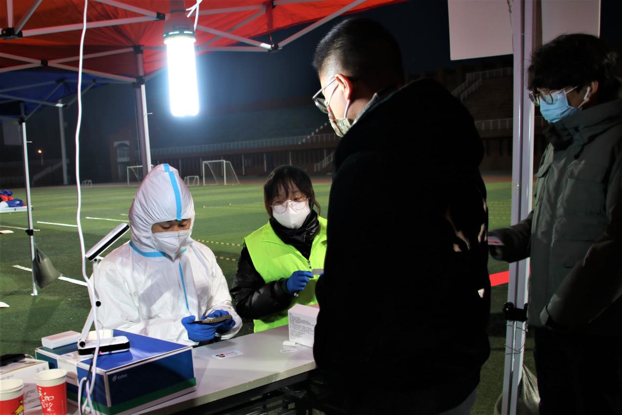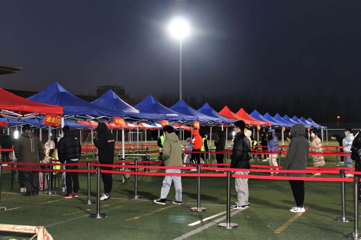 尽管室外气温低至零下,医护人员保持着从一而终的工作态度,120名师生志愿者拿出了最大的热情坚守岗位,保卫人员严阵以待、毫不松懈,后勤还贴心地为大家送上暖心的热饮。参加检测的教师、同学听从指挥,积极配合,检测过程高效有序。大家共同为打赢这场疫情防控阻击战贡献自己的力量。