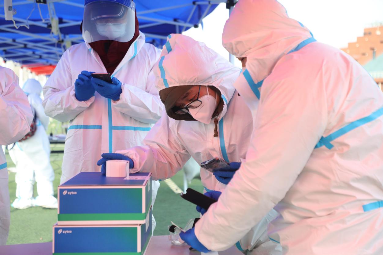 本次检测从下午14点开始,一直持续到晚间22点,共完成两个校区6989人的核酸检测。