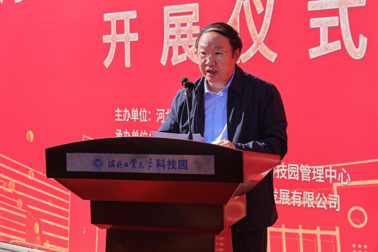 河北省科学技术厅科技奖励与成果转化处处长杨玲,河北省科学技术厅科技奖励与成果转化处二级调研员辛波,河北省科技成果转化促进中心主任孙立永,天津市北辰区科学技术局局长张昊军出席开展仪式,学校科学技术研究院、技术转移中心/国家大学科技园管理中心、天津AC米兰中文官网入口科技园发展有限公司以及各二级学院主要负责人参与开展仪式。