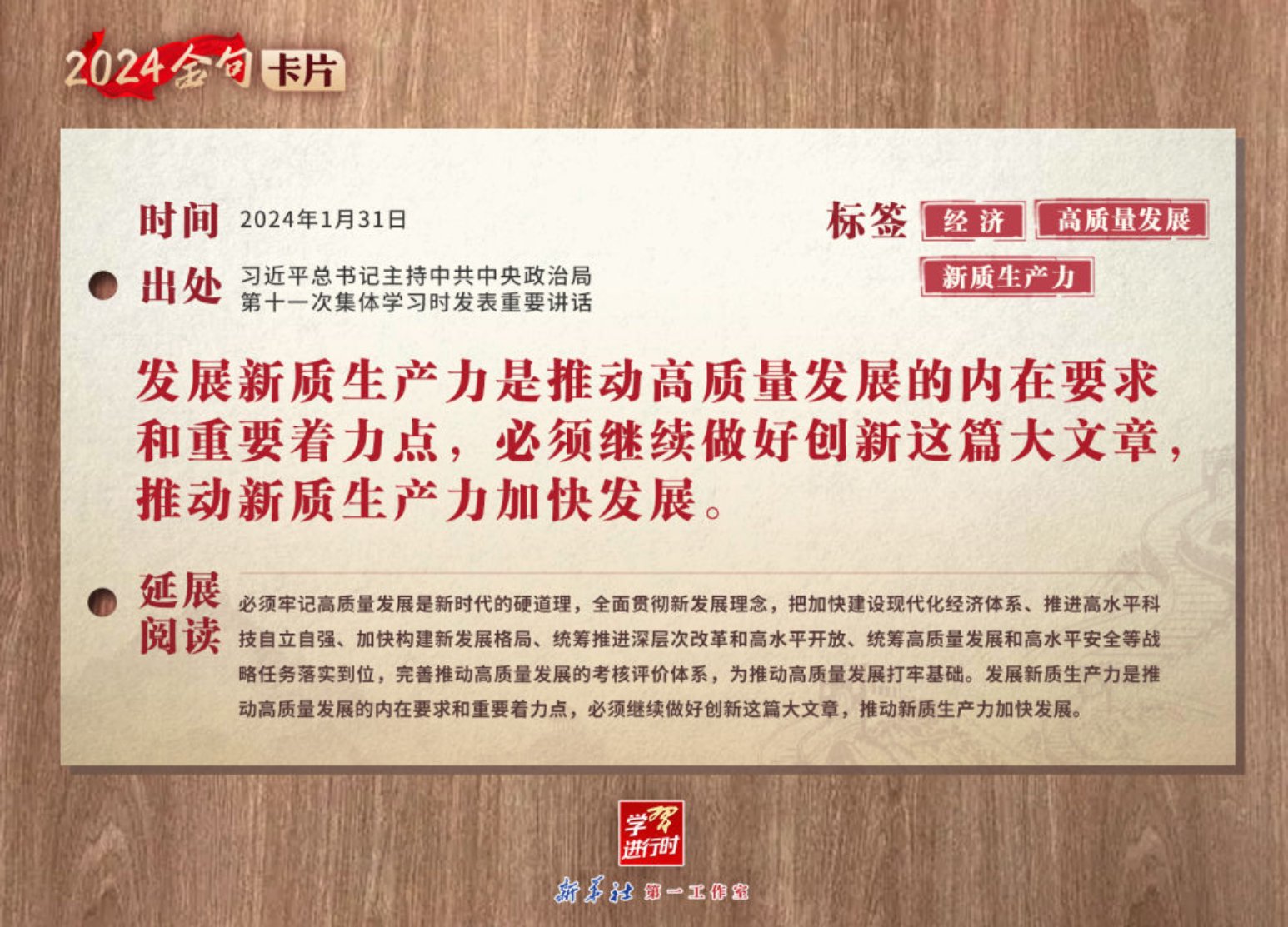 学习进行时丨2024金句卡片:习近平总书记谈“新质生产力”,这些话很深刻