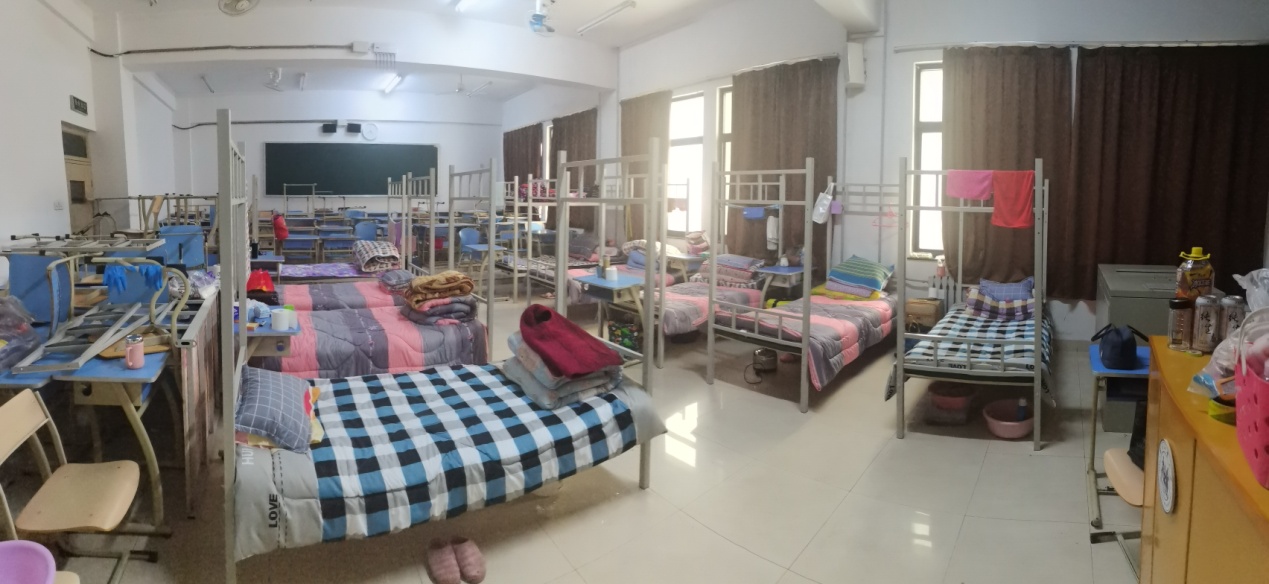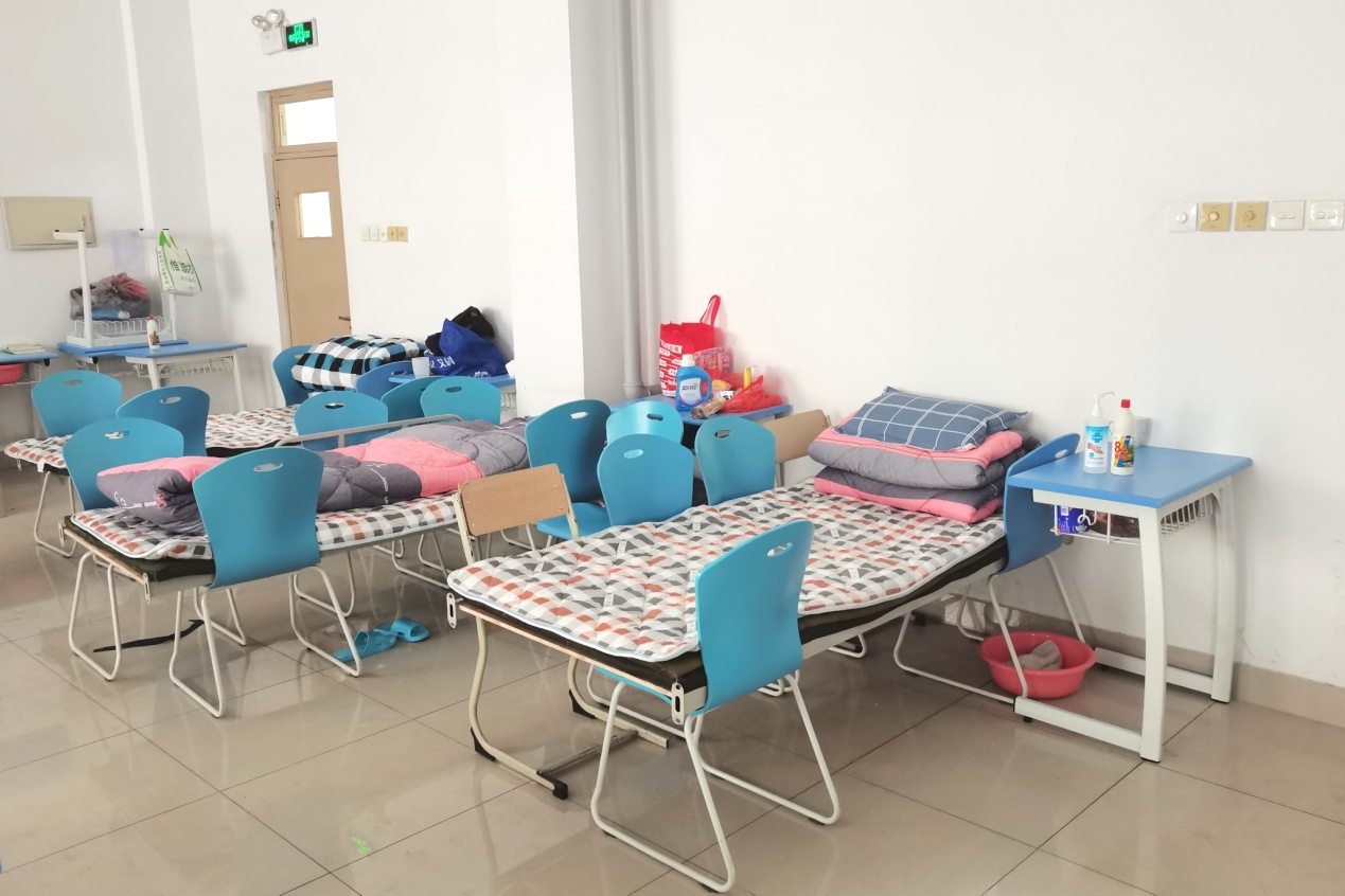 大批量人员临时住校,后勤服务中心在一天内紧急购置316张上下铺床和48张单人床,并连夜安装完成。同时紧急购置800余套床垫、被褥、床品、洗漱包、拖鞋、脸盆等生活用品,第一时间发放到位,充分保障留校人员的日常生活需求。