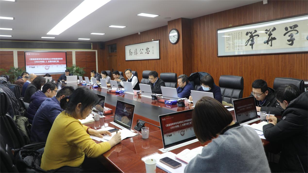 会上,马克思主义学院党委书记孙琳琼解读了教育部发布的《普通高等学校马克思主义学院建设标准(2023版)》和《全面推进“大思政课”建设的工作方案》,并对标提出了我们仍需完善的地方。校党委宣传部副部长曹旭冉就学校拟定的关于落实《高等学校马克思主义学院建设标准(2023版)》的工作方案(讨论稿)和关于落实《全面推进“大思政课”建设的工作方案》实施意见(讨论稿)进行了说明。随后,各相关部门领导结合各自分管工作对两个文件进行了讨论交流。