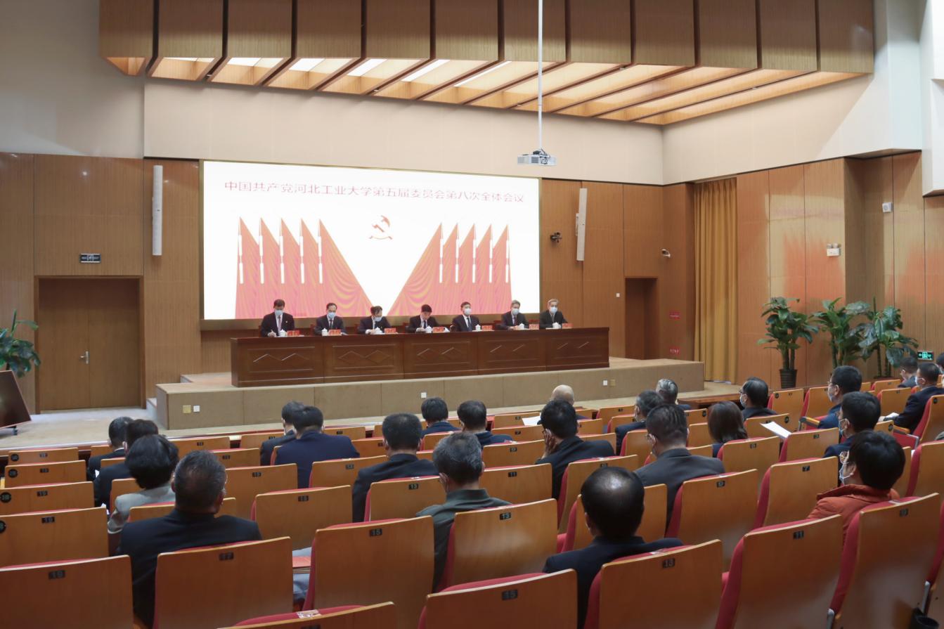 11月3日,中国共产党AC米兰中文官网入口第五届委员会第八次全体会议在机材楼报告厅召开。会议学习传达了党的二十大精神和河北省委十届三次全会精神,听取了校党委书记韩旭代表学校党委常委会所作的工作报告,审议通过了《中国共产党AC米兰中文官网入口第五届委员会第八次全体会议决议》。全会由韩旭主持。