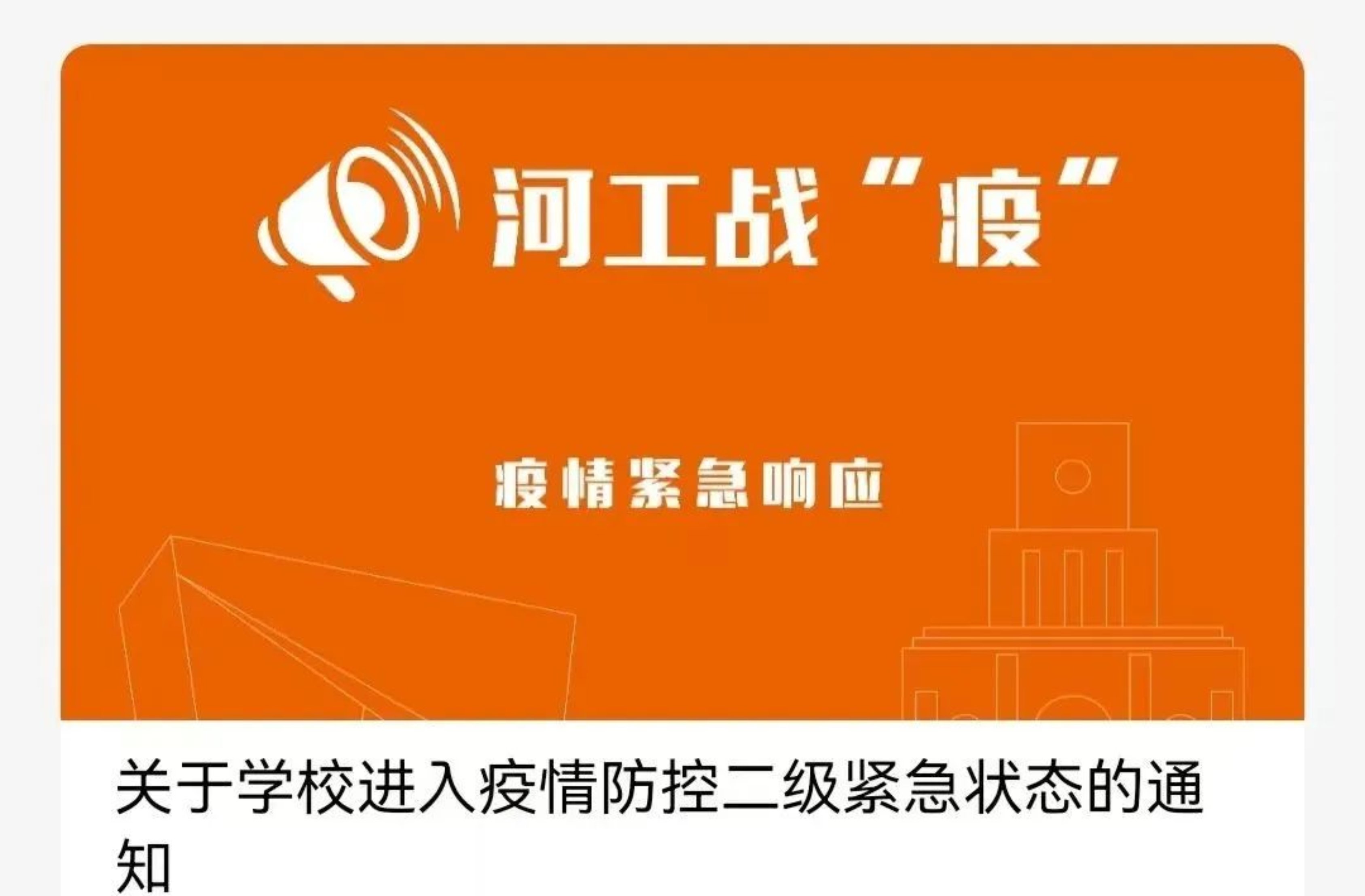 全体HEBUTers让我们同舟共济,共渡难关用行动和坚守肩负起疫情防控的使命担当用信任和理解凝聚起疫情防控的磅礴力量用奋进和奉献构筑起疫情防控的坚实防线打赢这场疫情防控的“遭遇战”!愿寒冬不寒,温暖如初共盼春来!