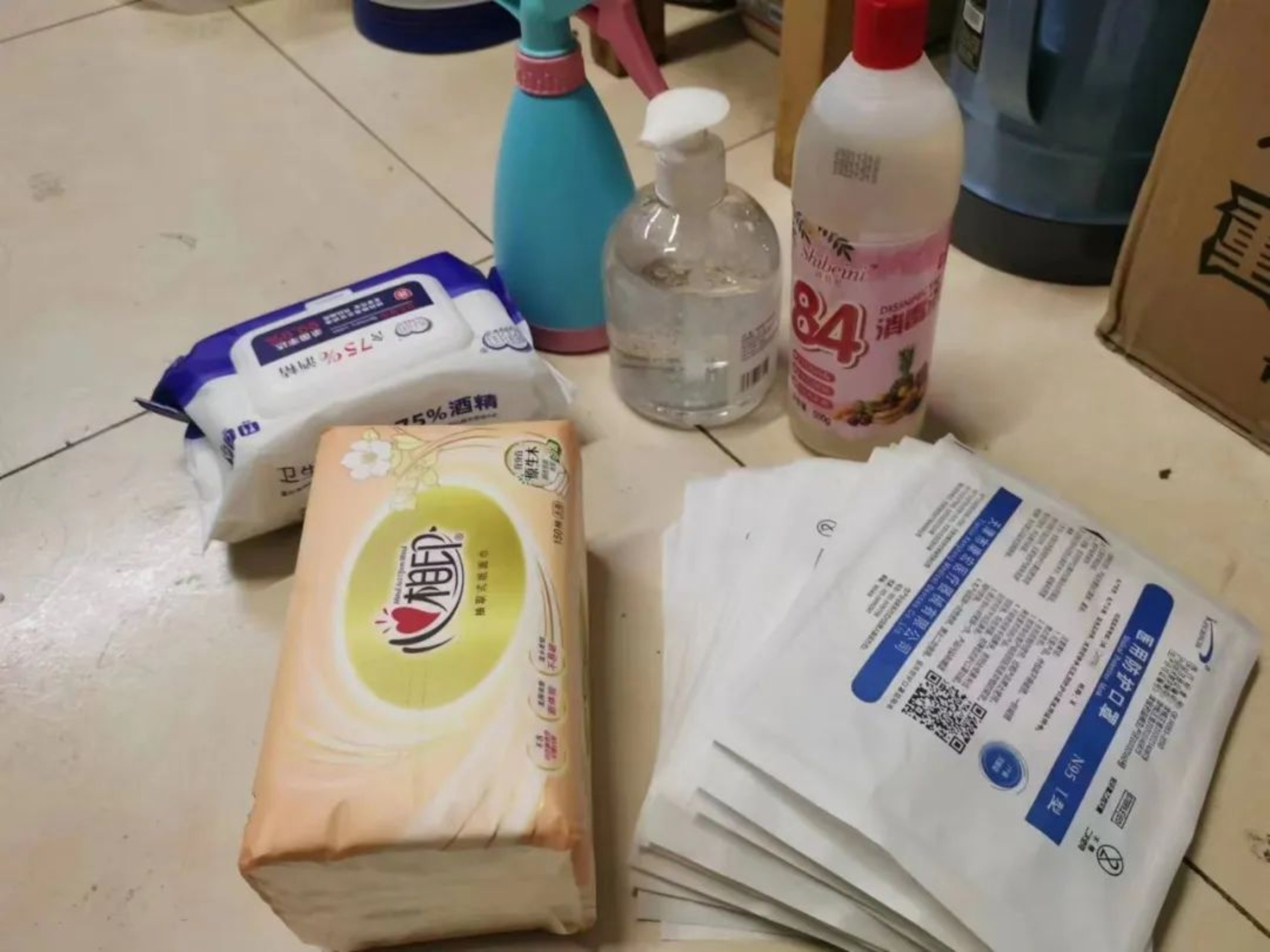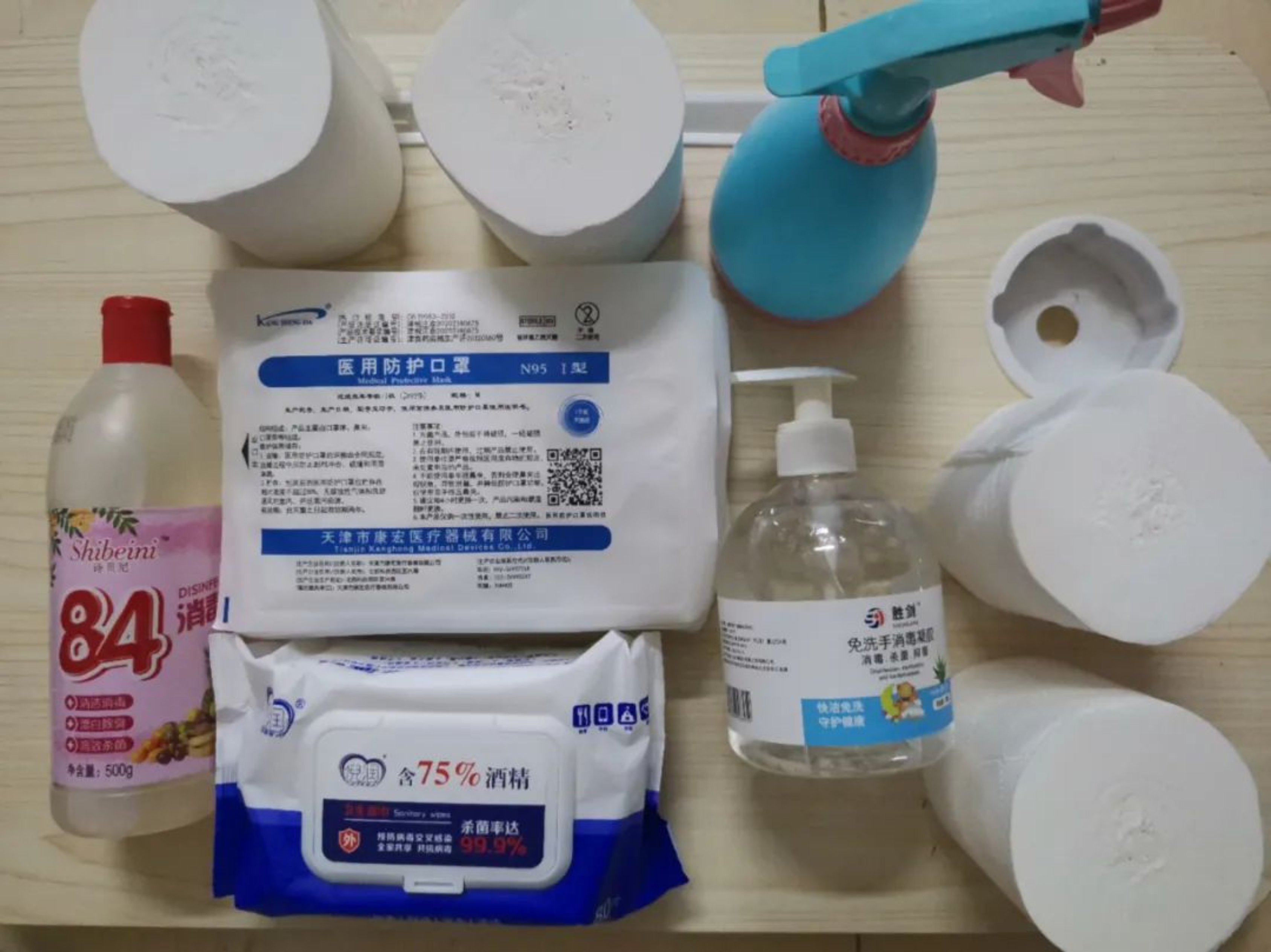 卫生纸、纸抽、湿巾、消毒液、N95口罩……