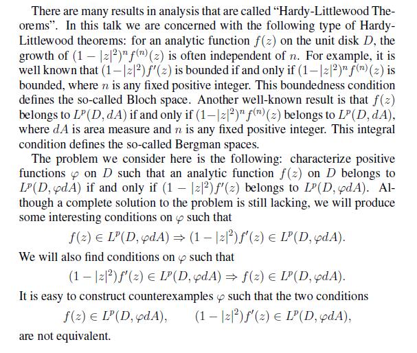 报告题目:HARDY-LITTLEWOOD THEOREMS FOR BERGMAN SPACES